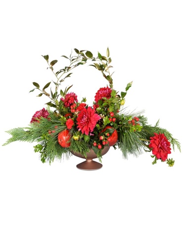 Add warmth and charm to your next dinner party. Apple Cider will have your guest mulling over their blessings. Red apples and berries are a cheery accent to the deep green evergreens highlighted in this footed bowl. Approximately 28" W X 11" H